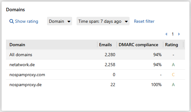 You can find an overview of the evaluation of your domains under Monitoring > Overview > Domains.